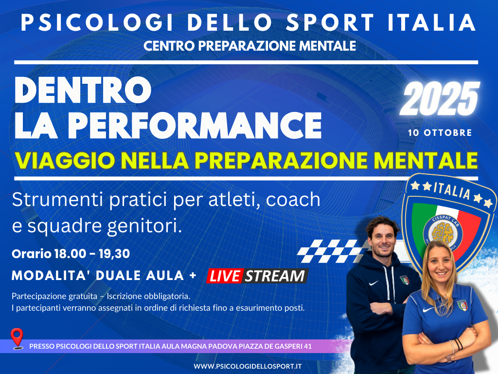 Master Ufficiale in Psicologia e coaching nello Sport di II Livello in Italia 18° edizione. Master con durata annuale, avrà inizio sabato 04 Ottobre 2025